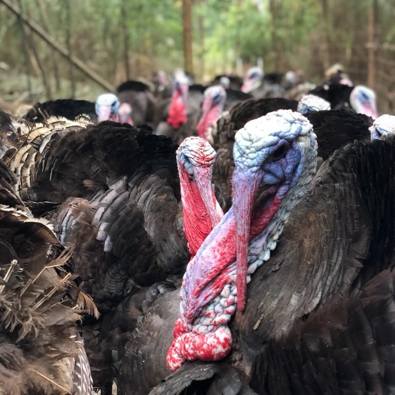 Os nossos perus são criados através de um maneio biológico e regenerativo. São livres de hormonas, antibióticos, OGM’s e têm acesso permanente a pastagens biodiversas